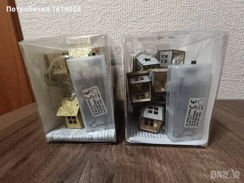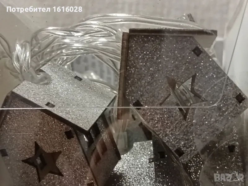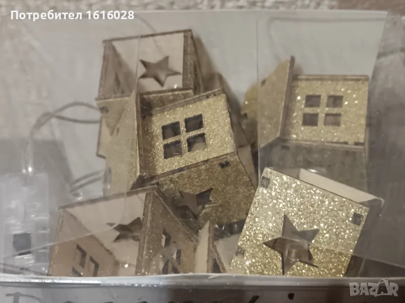 Коледен LED светещ герлянд с дървени къщички. → Обява 48495987