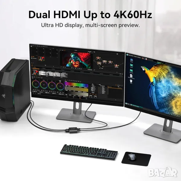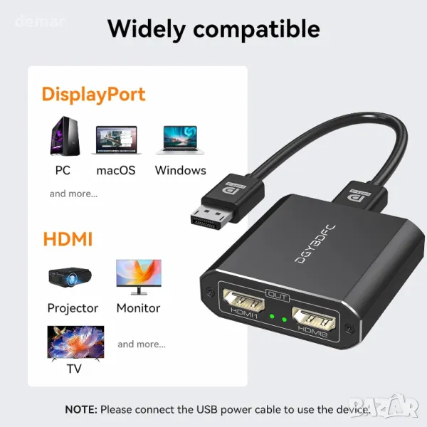 DGYBDFC 4K60Hz Displayport към двоен HDMI адаптер, DP 1.4 към 2х HDMI 2.0