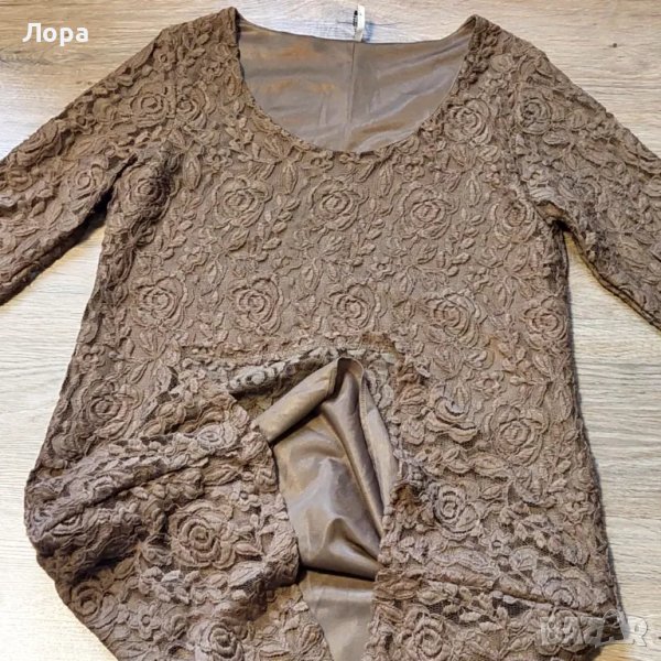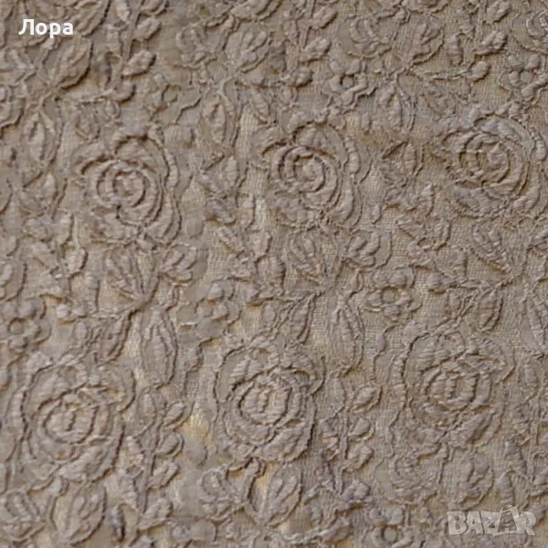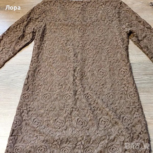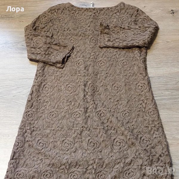 Дамска дантелена рокля с подплата. Има лека еластичност. Ширина в бюста едностранно 50 см. Талия 48 см. Ханш 60 см. Дължина на роклята 92 см. Няма забележки.