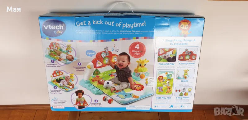 Пъстроцветната активна гимнастика на марката Vtech ще донесе много забавни и весели мигове на най-малките. Постелката е подходяща за най-малките бебета, но със сигурност ще се хареса и на по-големите. Комплектът включва атрактивни висящи играчки, които могат да ви помогнат да запазите концентрацията на бебето за дълго време и да го забавлявате.