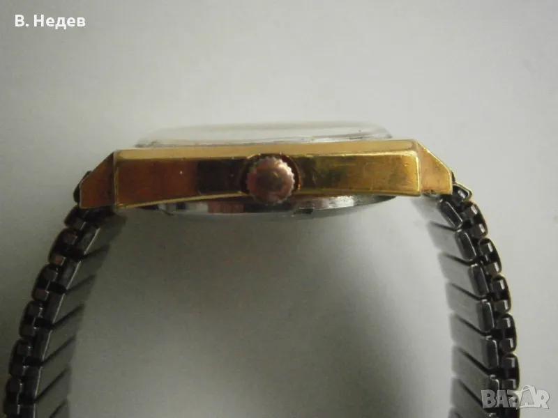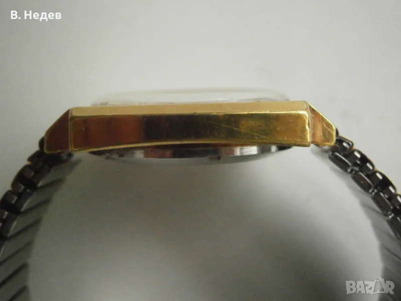 Часовникът е оборудван със стреч стоманена верижка /разтегателна, PVD позлатена/.