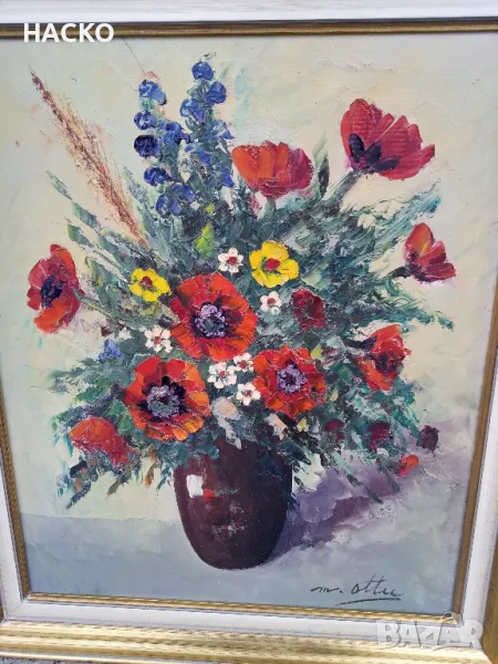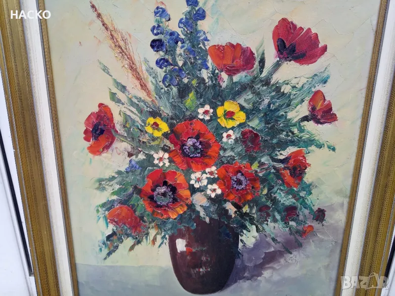 Промо Цена Стара Холанска Картина Масло Въху Ленена Канаваца "ПОЛСКИ ЦВЕТЯ" Внос от Холандия → Обява 48498112