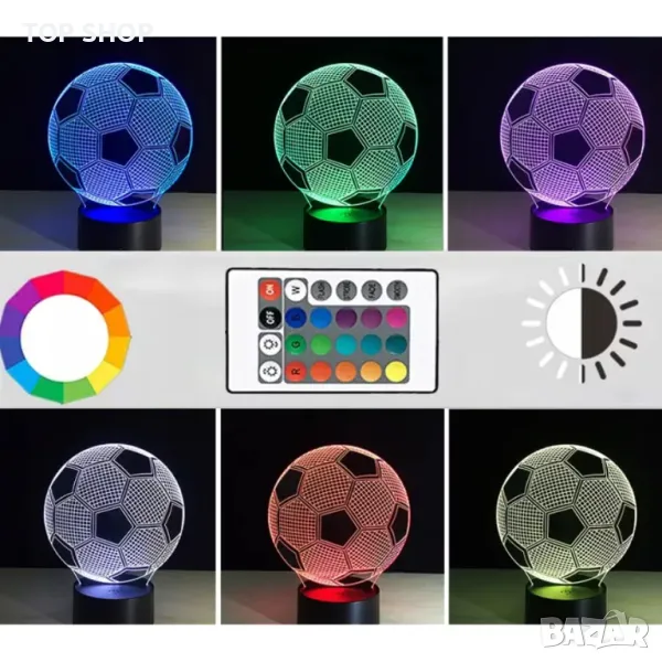 3D лампа многоцветна с достанционно - Футболна топка
