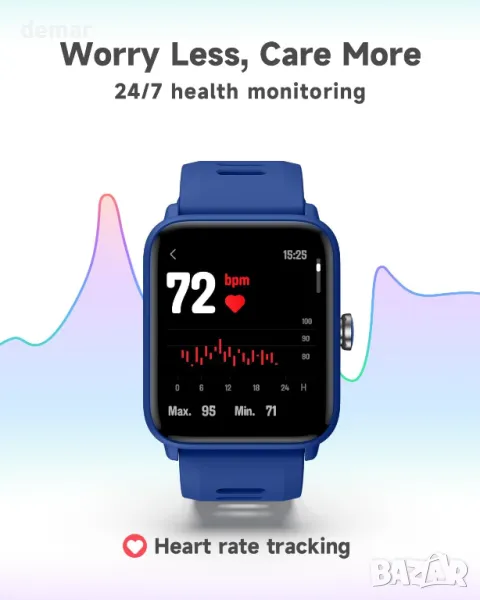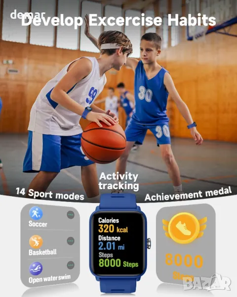 Детският смарт часовник BIGGERFIVE BRAVE проследява стъпки, разстояние, калории и активни минути, като поддържа 14 спортни режима, включително плуване и колоездене. Предлага проследяване на сърдечната честота и съня в реално време за цялостен мониторинг на здравето. Отличаващ се с 1,5" HD сензорен екран с персонализируеми циферблати, той позволява творческо персонализиране. С водоустойчивост 50M/5ATM е идеален за водни дейности, докато вибриращата аларма осигурява дискретни напомняния. Работи без приложение, но предлага подобрена функционалност с такова.