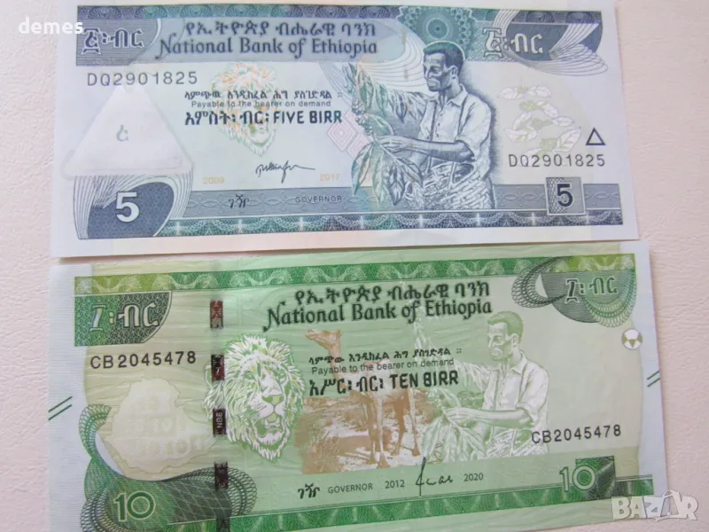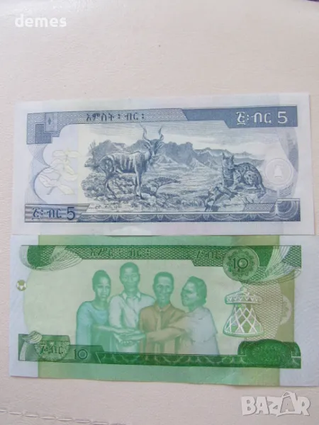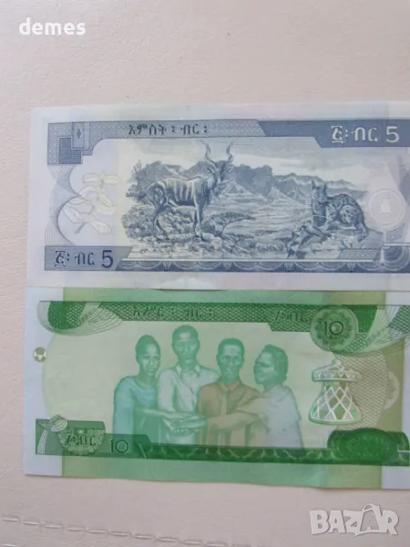 Сетът включва две банкноти от 5 и 10 бира, Етиопия.