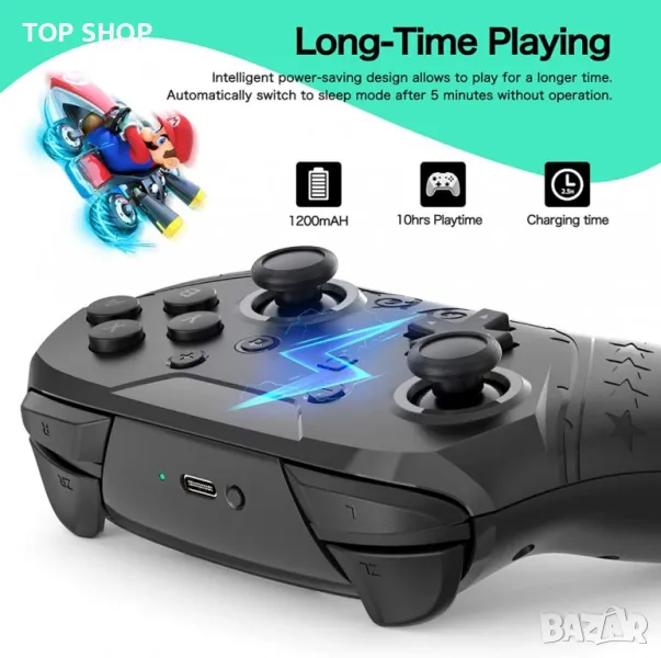 Game Pro Controller с функция за събуждане: YCCTEAM Pro Controller for Switch идва с функция за будилник. Когато игровата конзола е в режим на заспиване, трябва само да натиснете клавиш "HOME", за да събудите конзолата. Този съвместим с Switch/Switch Lite контролер YCCTEAM Pro е много пчеларски, с по-големи A, B, X и Y бутони от дясната страна, по-добър D-pad, подкрепен от двойни тригери и офсетни аналогови стикове. Независимо дали играете у дома или на маса, това е задължителен аксесоар.