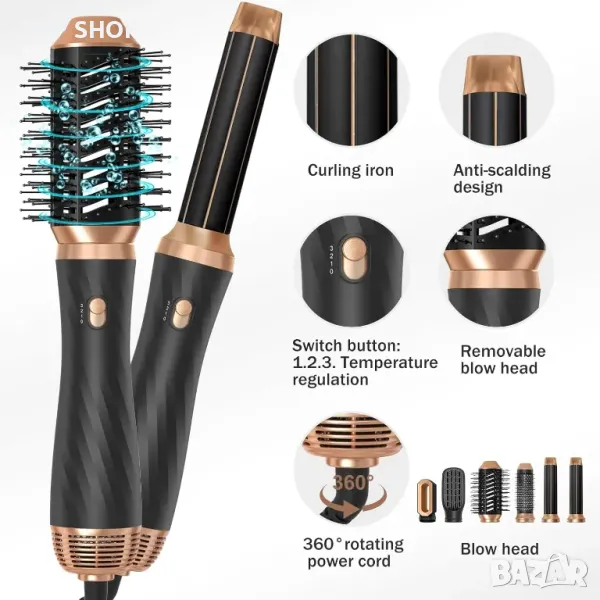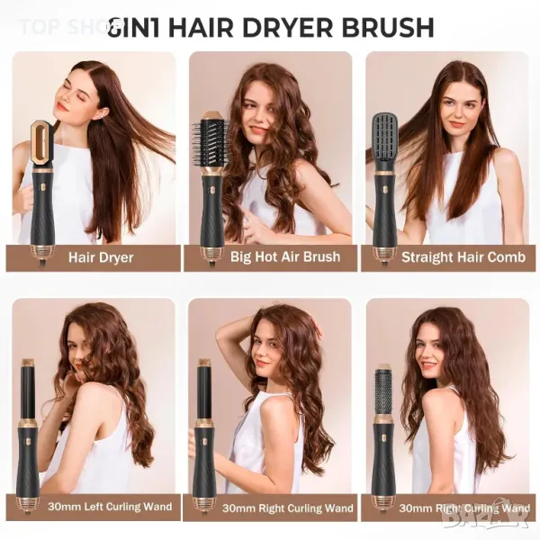 Четка- сешоар 6 в 1 за коса Yitrust , четка за сешоар с горещ въздух Инструменти за оформяне на коса, подвижна четка за сешоар Въздушна маша за коса, четка за сешоар Hair Styler Wrap, четка за сешоар Styler Комплект инструменти за оформяне на коса