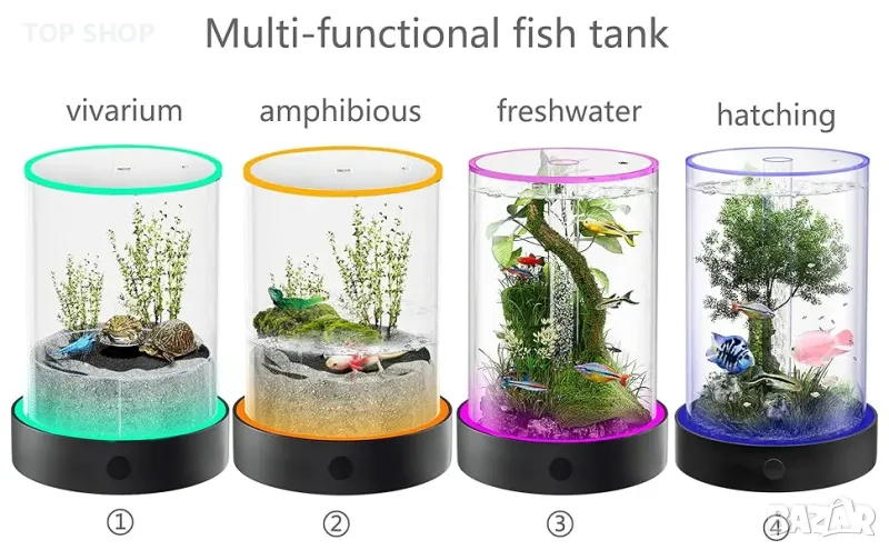 【Многофункционален аквариум за риба със страхотна стойност】: Този цилиндричен аквариум осигурява просторна и комфортна среда, специално проектирана за риба бета и други малки водни същества. Той е подходящ не само за живи растения, скариди и други деликатни видове, подпомагащи излюпването рибни яйца и позволява създаването на идеално местообитание за аквариум чрез ландшафтен дизайн „Направи си сам“ с декорации за аквариум
