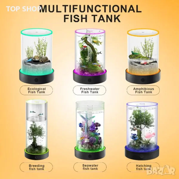 златни рибки служи не само като местообитание за вашите рибки, но може да се използва и като нощна лампа или декоративен орнамент във вашата всекидневна, спалня или дори във вашия офис. LED лампата за аквариум ще добави нотка атмосфера и красота към всяко пространство