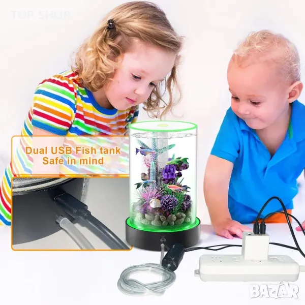 Пълен комплект малък аквариум с компресор, филтър, осветление от 5DPets