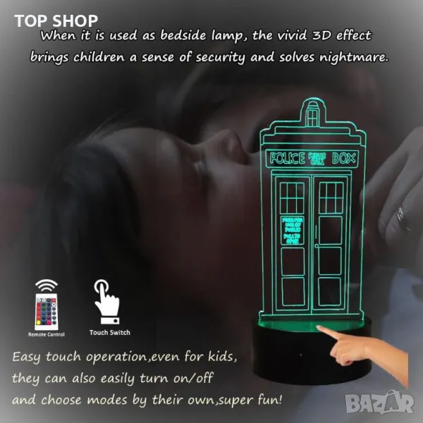Tardis Нощна лампа за декор на детска спалня Call Box 3D лампа Dr. Who Box Играчки за детска стая Нощна лампа
