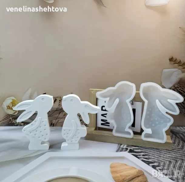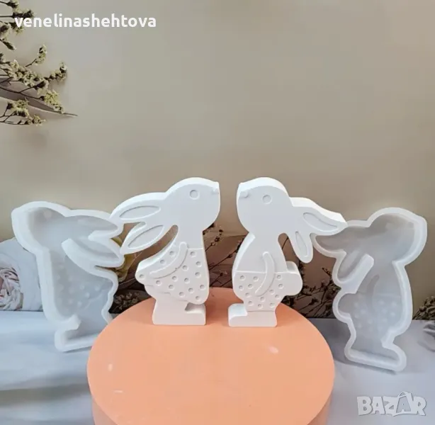 Комплект мъжки и женски заек зайчета Дълбок силиконов молд форма за свещи гипс сапун → Обява 48500693