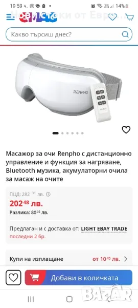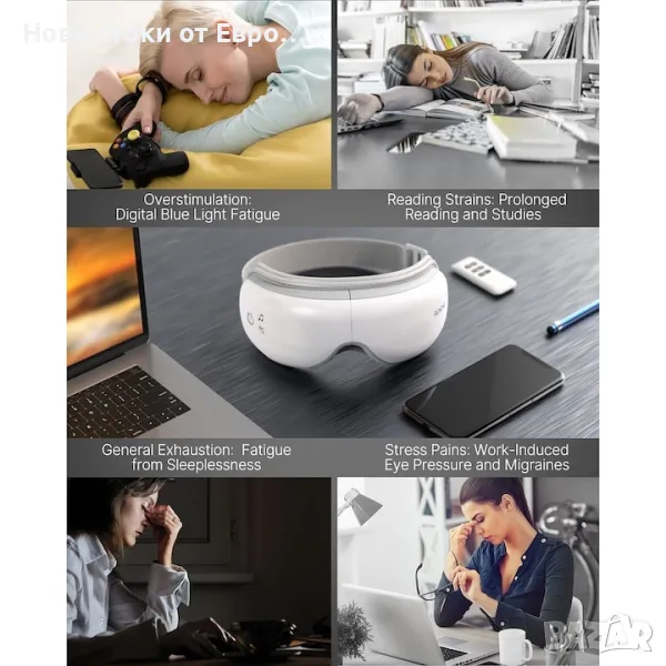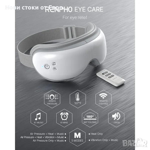 Масажор за очи Renpho с дистанционно управление и функция за нагряване,