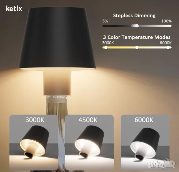 【Водоустойчивост IP54】 Тази преносима настолна лампа с бутилка е изработена от висококачествен алуминий, технология с клас на защита IP54, без да се притеснявате от навлизане на вода, може да се използва за различни случаи на открито.