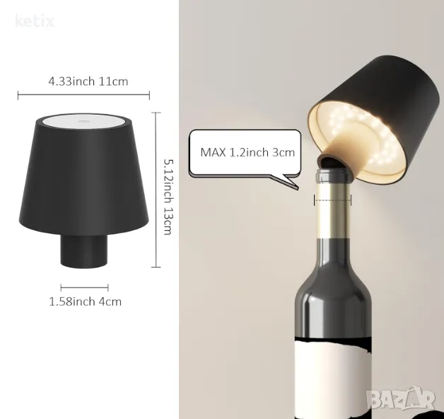 【Широко приложение】Тази лампа за бутилка е подходяща за гърло на бутилка с диаметър до 1,2 инча/3 см. Нашите настолни лампи са много подходящи за подарък за семейство и приятели. Малката настолна лампа е подходяща за много сцени, като нощно шкафче, маса за хранене, всекидневна, бар, вътрешно и външно осветление и др.