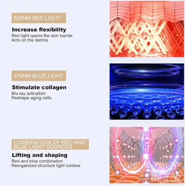 【МАСАЖОР ЗА ДВОЙНО ПОВДИГАНЕ НА БРАДИЧКАТА】--- Двоен високочестотен микровибрационен лифтинг, червено и синьо редуващи се съживяват кожата. Решаване на кожни проблеми като хипертрофия на дъвкателния мускул, натрупване на мазнини, подуване на фронталния мускул, мускулна релаксация и петна по кожата.