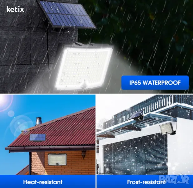 - Клас на защита IP65: LED соларният прожектор за открито е изработен от висококачествен ABS и може да издържи на различни тежки метеорологични условия на открито. С професионалната степен на защита IP65, соларната лампа е водоустойчива и прахоустойчива. Може да поддържа яркостта си дори по време на дълги периоди от време на открито