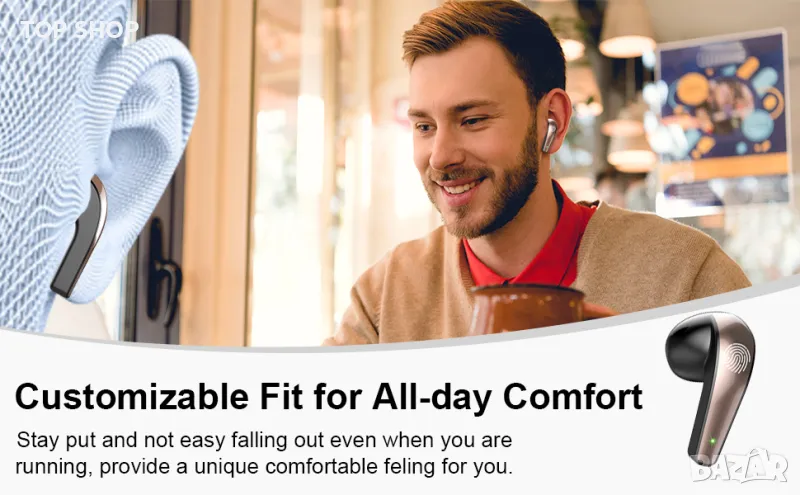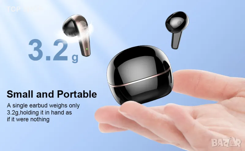 IP7 Водоустойчиво и сензорно управление: Bluetooth безжичните слушалки поддържат сензорно управление с две уши, осигурявайки удобна работа с контрола на звука, предишна/следваща песен, пауза и отговаряне на повиквания, както и управление на гласов асистент. IP7 водоустойчивост предотвратява обикновена пръскаща вода и дъжд. Насладете се на спорт и дейности на открито, без да се притеснявате, че ще се намокрите или изпотите.