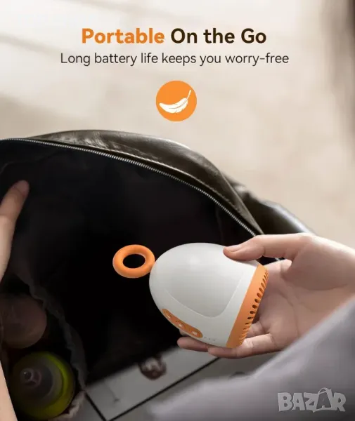 Акумулаторна и преносима: презареждаща се през USB (включен USB кабел), едно зареждане стига за цял ден. Предлага се с въже за окачване, закачете го на количката, чантата или нещо друго, за да приспите бързо бебето си.