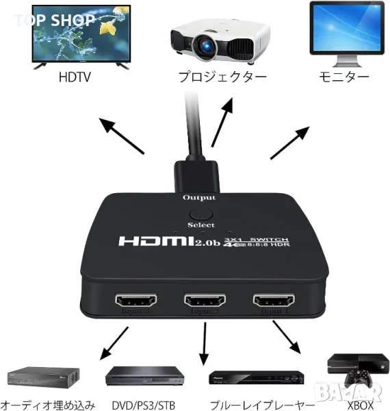 3 In 1 Out HDMI Switcher: 3 HDMI входни порта и 1 HDMI изход за различни HDMI устройства. HDMI Switcher: 3 порта работят с повечето устройства със стандартни HDMI интерфейси. Вход: компютър, лаптоп, Xbox 360, PS3/PS4, Roku Express, Amazon Fire TV Stick, Blu-ray, DVD и др. Изход: Full HD телевизор, проектор, монитор и др.
