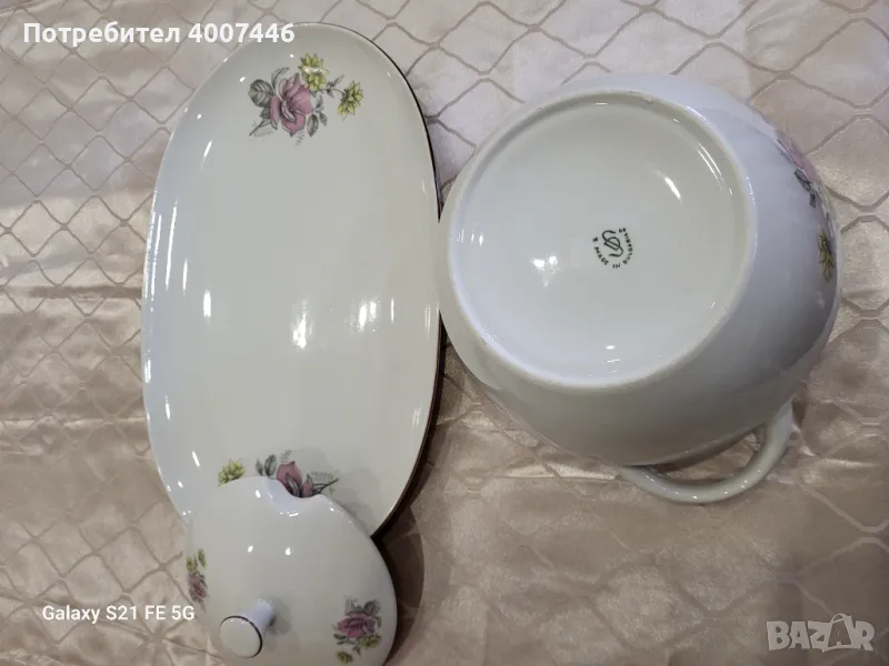 Изида!!!Супник с вместимост 2.600мл . и голямо плато елипса със същия декор.