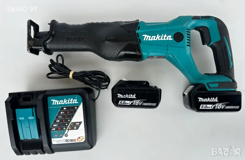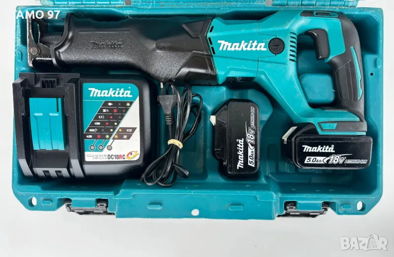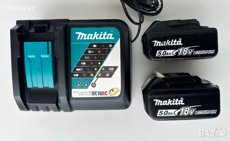 Макита в отлично визуално състояние, както се вижда на снимките и работи перфектно без никакви забележки, внос от Франция. Обявената цена е за машината с две батерии по 18V 5.0Ah с индикатор държащи заряд, бързо зарядно и оригинален куфар.