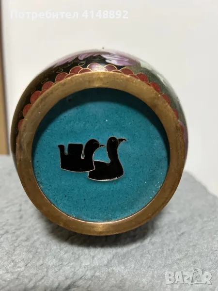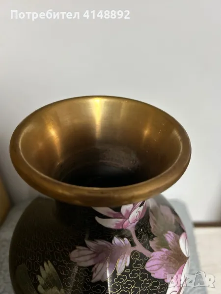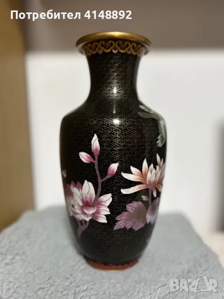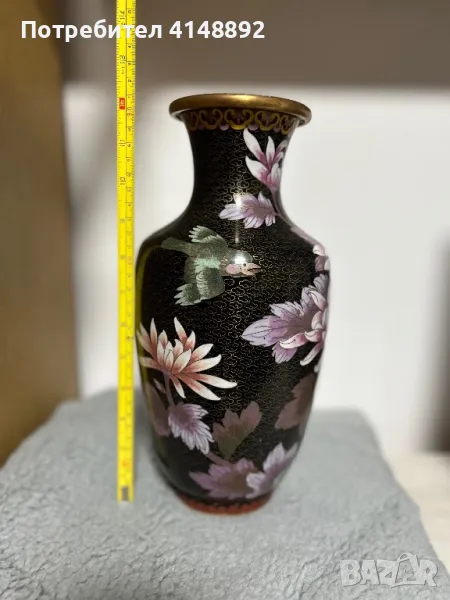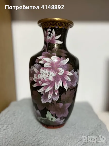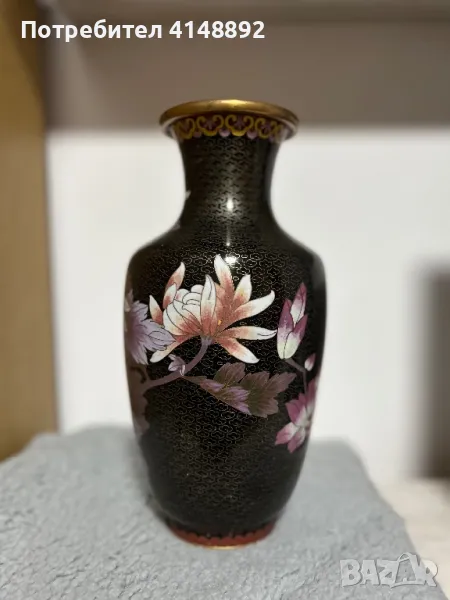 Уникат! Продавам китайска старинна ваза с емайлиран бронз от 19 век. Ръчна изработка декорирана с цветен клетъчен емайл Клоазоне – Cloisonne с много красиви цветове, богати нюанси и ослепителен блясък. Височина 31 см. За гр. София може и лично предаване.