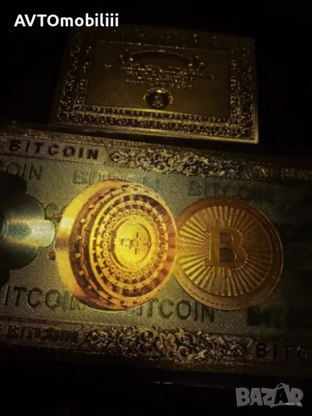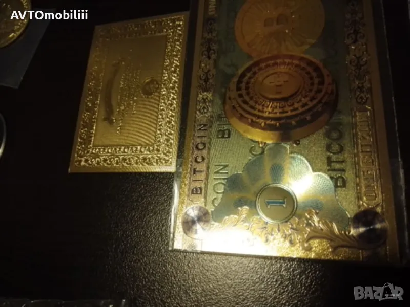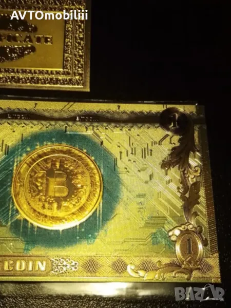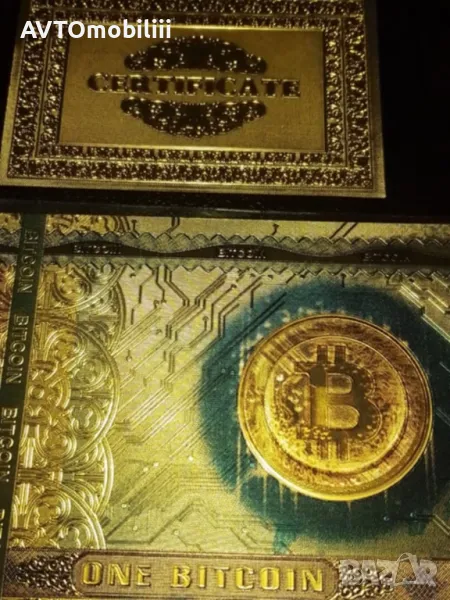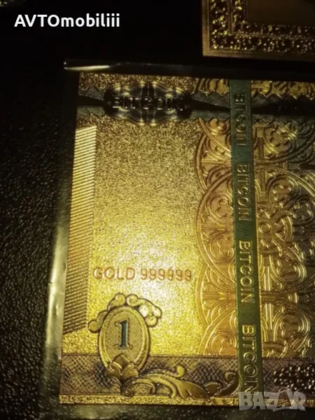 Банкнота позлатена с 24 карата злато със сертификат Биткойн ,
