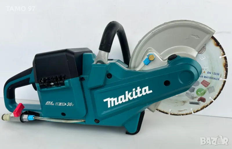 фугорез (резачка за бетон) на Макита неразличим от нов, както се вижда на снимките и работи брилянтно. Машината е оригинално японско производство, внос от Франция. Обявената цена включва машината, 2 батерии по 18V 5.0Ah с индикатор и двойно бързо зарядно за зареждане на двете батерии едновременно.