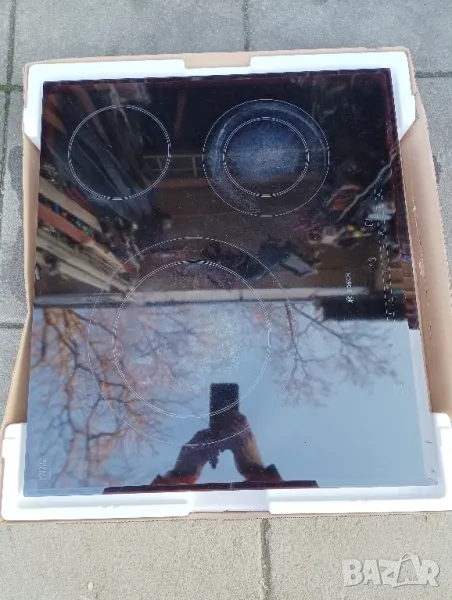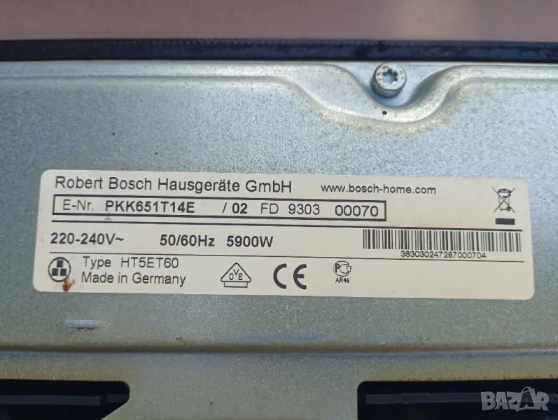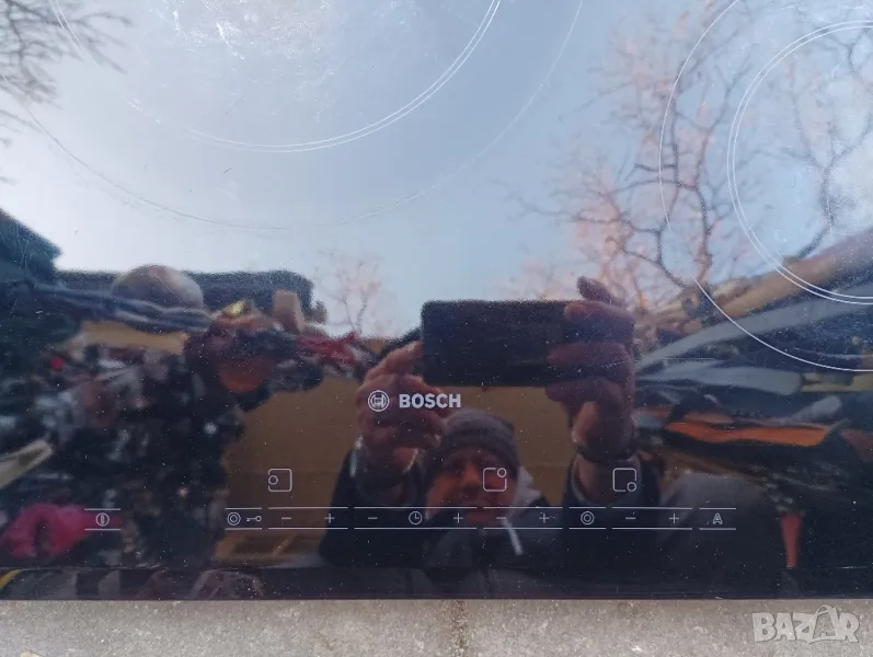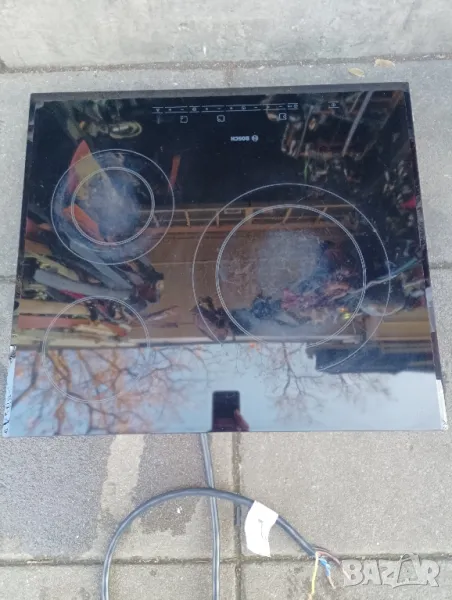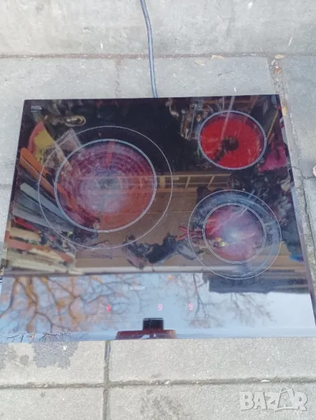 Стъклокерамичен плот за вграждане BOSCH, модел PKK651T14E. Всички функции на плота работят без проблем. По керамиката има следи от употребата му, други забележки няма. Може да работи на монофазен и трифазен ток, 220/380 V. Еконт, Спиди, лично предаване.