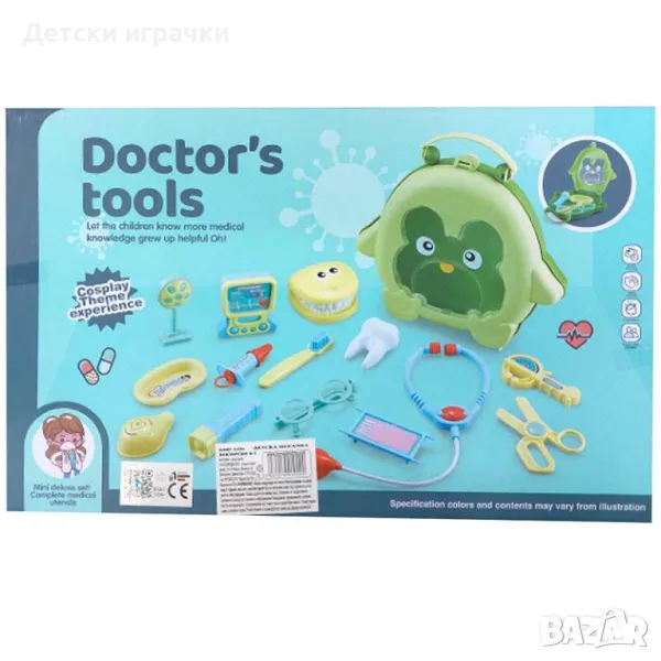 Удобната кутия лесно събира всички лекарски принадлежности, което учи децата на подреденост и ред.