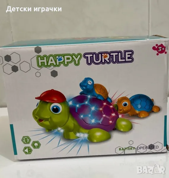 Красив и качествен продукт, предназначен за малки деца под формата на костенурка, която носи по-малка костенурка, а друга се движи след нея.