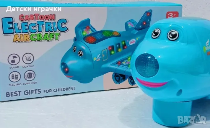 Самолетът е със сладък анимационен дизайн и привличащи окото цветове.