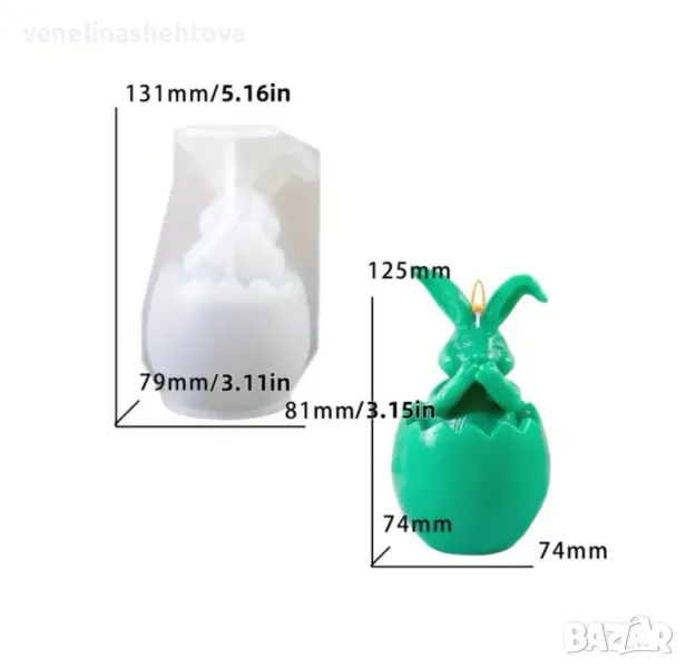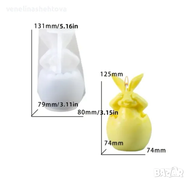 3D Три модела Великденски заек зайче в яйце Силиконов молд форма калъп за свещи гипс сапун → Обява 48503313