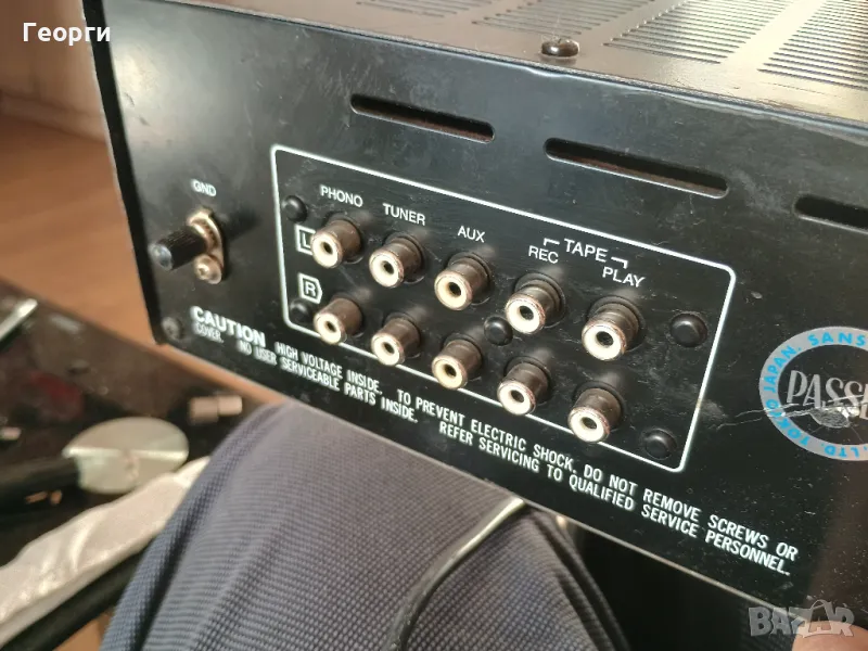 Имам зададен въпрос дали транзисторите са оригиналните и дали нещо е сменяно. Транзисторите са оригиналните NEC и се виждат през капака, нищо не е сменяно по уреда и всяко нещо работи. Единствена нередност е частично падналата боя по ръба на панела. Няма удари, няма механични повреди по панела, снимките са ясни и се вижда състоянието. Като при нужда от още снимки, само поискайте. Също може да се види и чуе на място във Враца (включително ще се уверите сами под капака). Дръжките не се продават отделно!!!!
