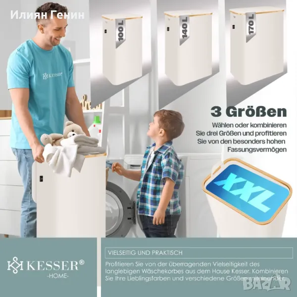 KESSER® Кош за пране с капак 2 отделения Сгъваема 140-литра - 50.00лв.