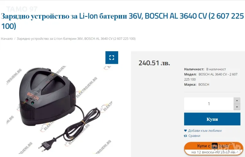 Продавам бързо зарядно устройство на Бош за литиево-йонни батерии от 18V до 36V. Зарядното работи перфектно, внос от Франция.Пращаме с опция преглед и тест с куриерска фирма еконт може и лично предаване за гр. Шумен. Магазинската цена е: 240лв