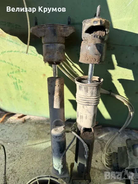 Въздушното окачване е здраво и работещо,възглавниците са здрави,компресора също,има омасляване на един преден и един заден амортисьор,другите два нямат проблем.Цената е за комплекта