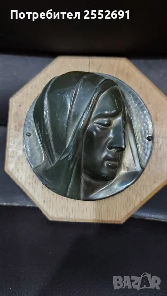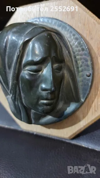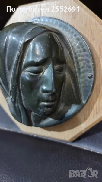 Метална/бронзова/ декорация "ДЕВА" за стена на дървена основа. Размери- 11/11/4см.