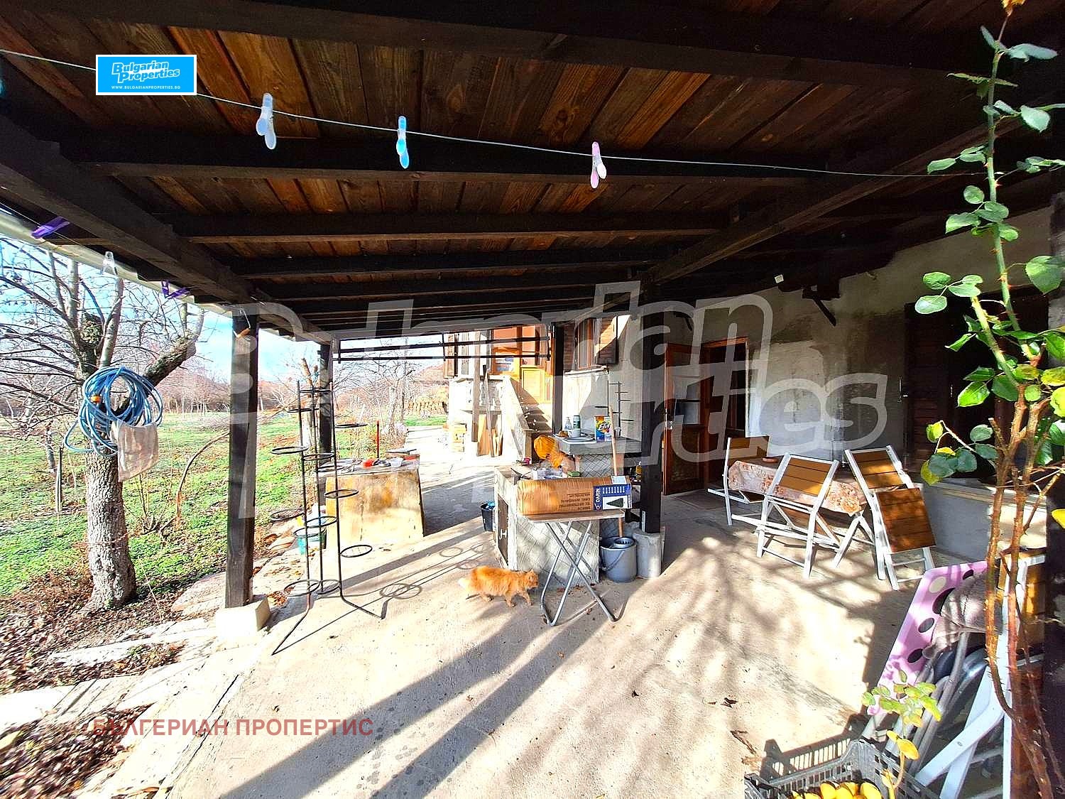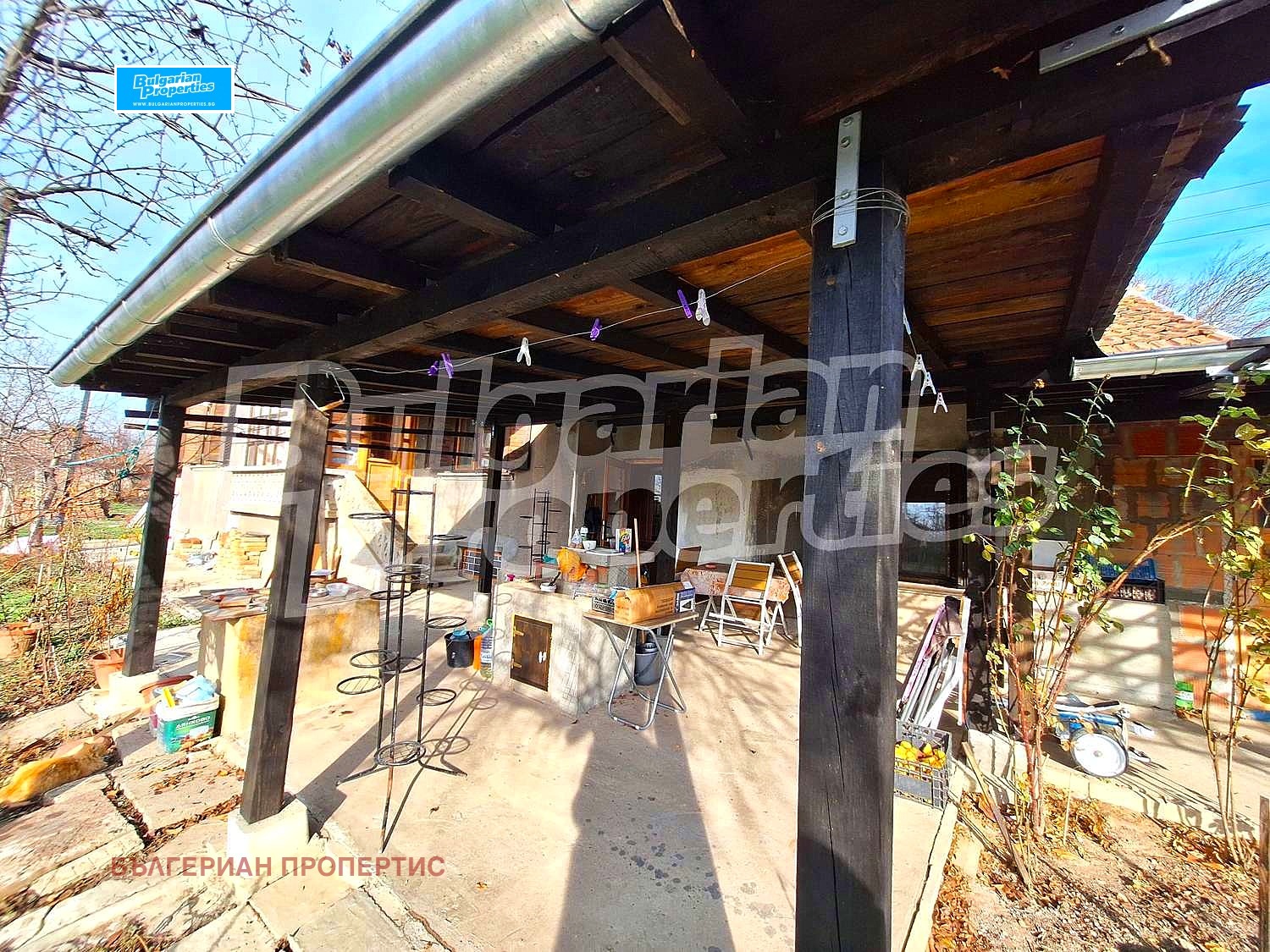 Пред къщата е разположен голям навес, под който лесно може да паркирате автомобил или да организирате вечери на открито. Освен това, имотът предлага и допълнително помещение около 30 кв. м., идеално за работилница или склад.