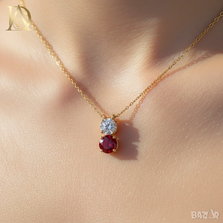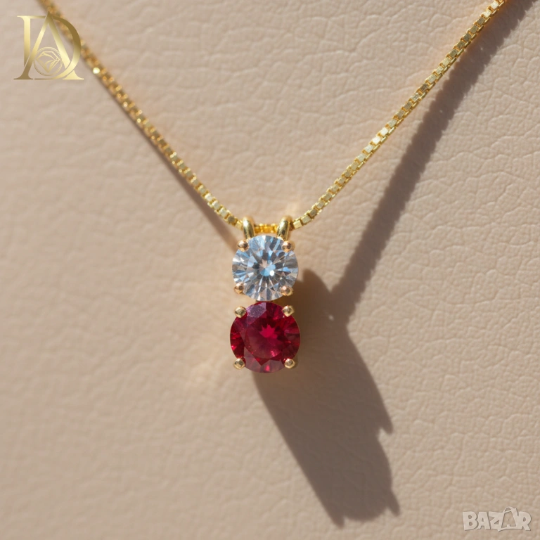 Ново Златно Италианско Колие с 0.40кт Естествен Диамант и Рубин → Обява 48504873