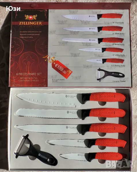 Комплект ножове ZILLINGER ZL-780, снимка 1 - Прибори за хранене, готвене и сервиране - 48505493 Комплект ножове ZILLINGER ZL-780, снимка 2 - Прибори за хранене, готвене и сервиране - 48505493 Комплект ножове ZILLINGER ZL-780, снимка 3 - Прибори за хранене, готвене и сервиране - 48505493 Комплект ножове ZILLINGER ZL-780, снимка 4 - Прибори за хранене, готвене и сервиране - 48505493 1/4