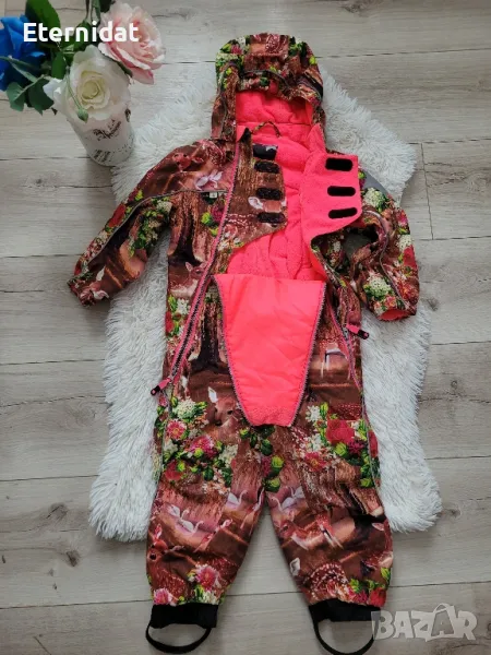 Висококачествен водонепромокаем гащеризон-ескимос за момиченце със светлоотразителни елементи. Гумени детайли за под обувките. репеи, ватиран, закопчаване ципове. Това е единственият гащеризон с който детето остана сухо въпреки въргалянето в снега! Размер 92-98см