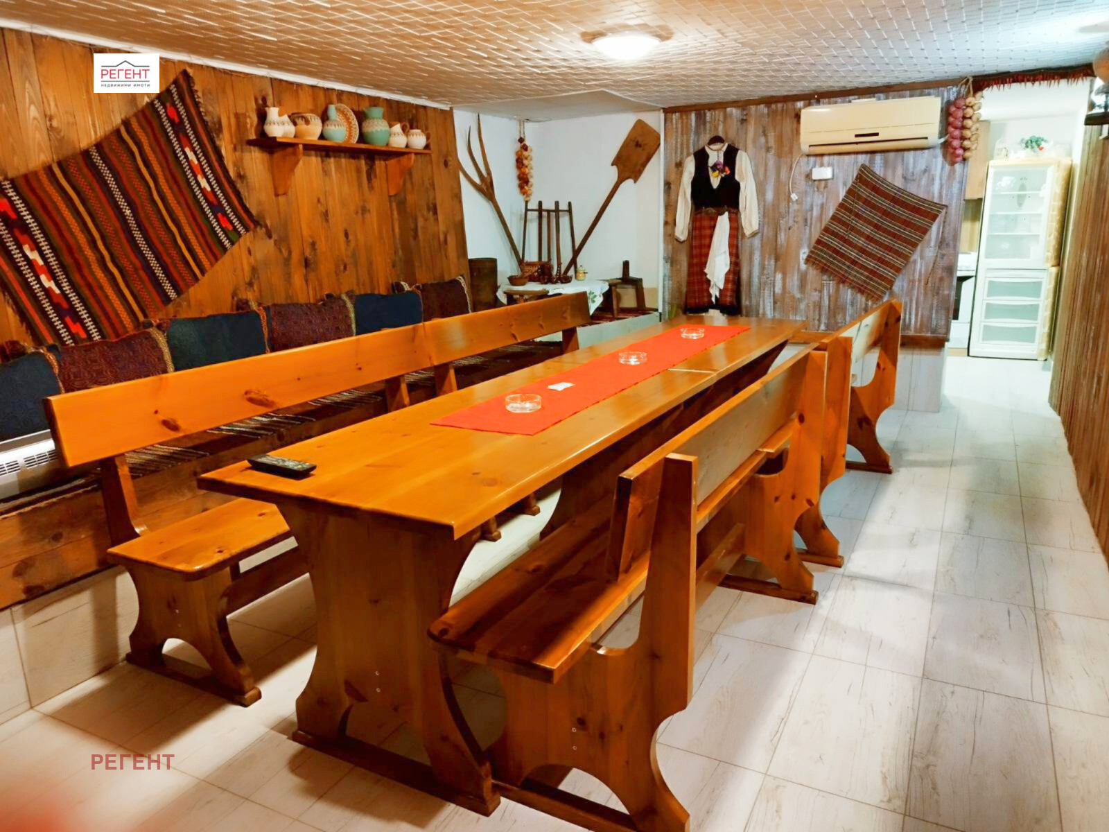 С обща застроена площ от 280 м2 и двор от 900 м2, този имот предлага комфорт и уют както за постоянно живеене, така и за успешна бизнес дейност. Приземният етаж разполага с просторна механа, съчетана с кухня, което я прави перфектно място за семейни събирания или гости. Първият етаж, предназначен за собствениците, включва просторна дневна, комбинирана с трапезария и кухненска зона, коридор, спалня, баня с тоалетна, перално помещение, голямо закрито барбекю и складово помещение. Вторият етаж е идеален за гости, разполагащ с пет спални и две бани с тоалетни.