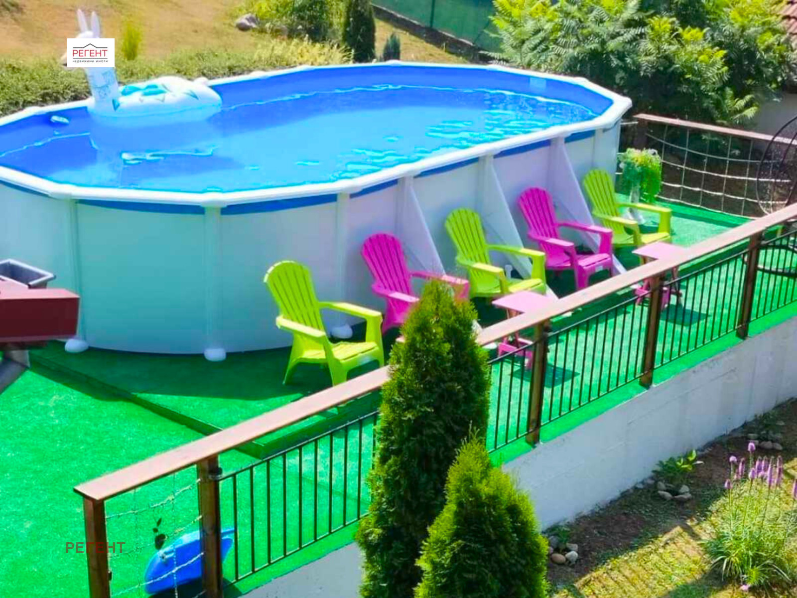 Къщата е изцяло климатизирана, което осигурява отопление през зимата и комфорт през летните месеци. Топлата вода се осигурява от 200-литров бойлер, подпомаган от соларен панел. Озелененият и поддържан двор разполага с зони за релакс, включително сглобяем басейн с площ от 28 м2, оборудван с пясъчен филтър и термопомпа. Имотът е допълнен с просторна веранда, малка складова постройка и удобен паркинг за три автомобила. Това би било не само перфектният дом за вашето семейство, но и функционираща къща за гости, която се продава напълно обзаведена и оборудвана, с редовни клиенти, което я прави отлична инвестиция.