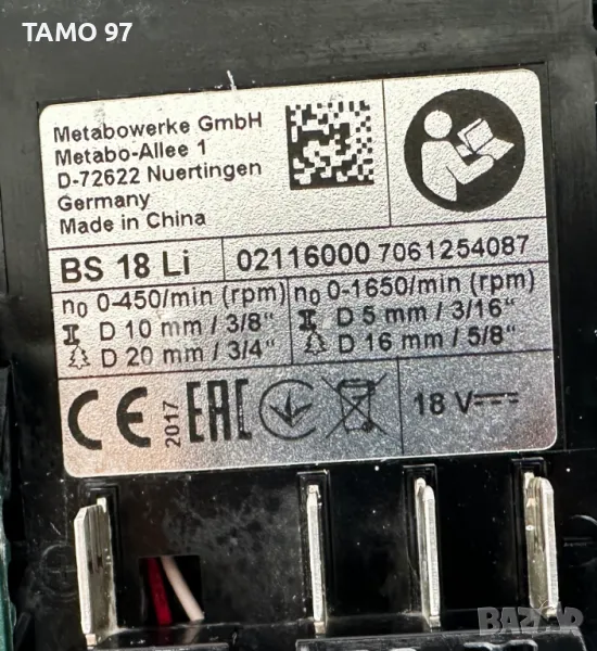 Марка и модел: Metabo BS 18 Li