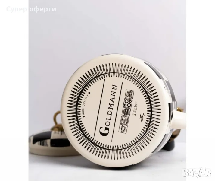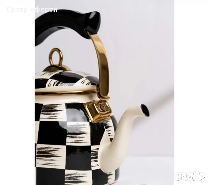 Чайник Goldmann, 2.5л., Емайл, Индукция, Бял/Черен каре → Обява 48506148