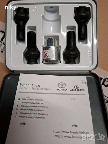 Чисто нови, оригинални, секретни болтове комплект за за TOYOTA LEXUS ТОЙОТА ЛЕКСУС PW45600025, Safety bolt set. WHEEL LOCK SET PW456-00025. Болтовете са чисто нови и никога не са използвани. Made in USA.
