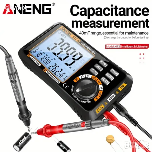 - 【Тестер за интелигентен цифров мултицет】Смарт мултиметърът ANENG 612 с автоматичен режим ви позволява бързо да превключвате всички измервателни задачи, включително AC/DC напрежение, ток, съпротивление и непрекъснатост, кондензатор, омове, без да избирате режим или диапазон. Прави измерването лесно, бързо и точно. Със задържане на данни, индикатор за изтощена батерия, дисплей с подсветка.