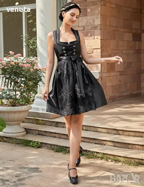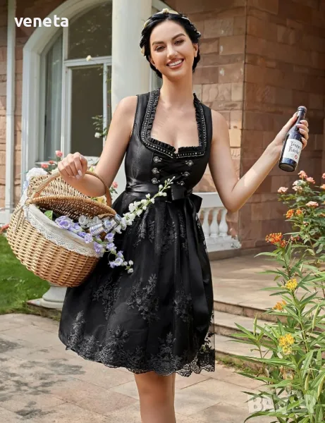 Облеклото е от 2 части и се състои от рокля и престилка. Перфектният костюм за Октоберфест